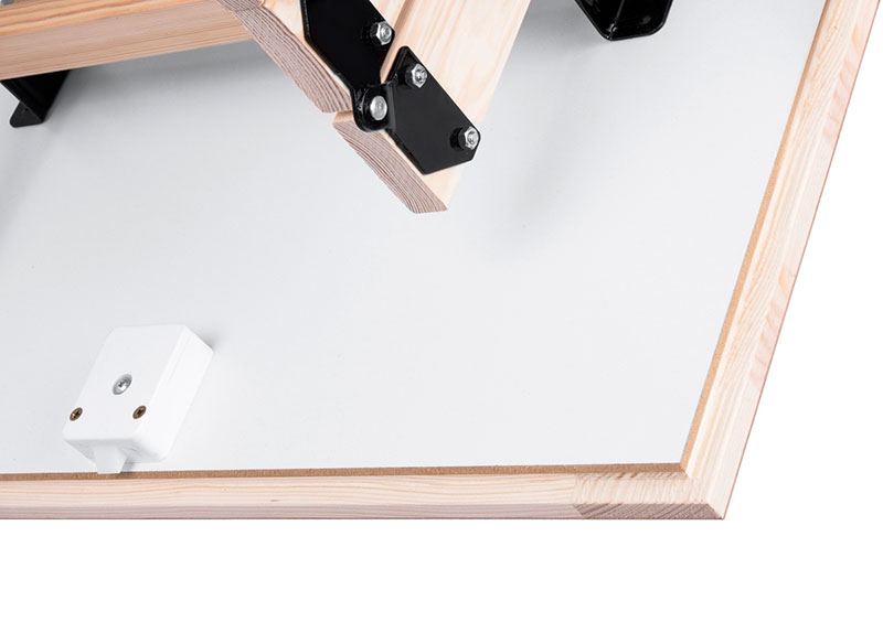 Входящий в комплект изделия люк толщиной 26 мм выполняет термоизоляционную функцию за счет внутренней изоляции из пенополистирола в сочетании с уплотнителями по всему периметру. С обеих сторон он облицован белым ДВП, поэтому хорошо сочетается с потолком светлого цвета.
