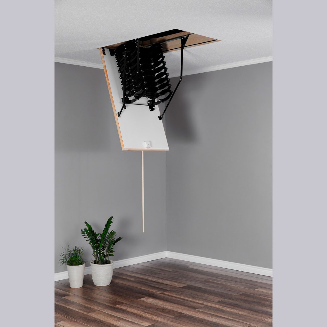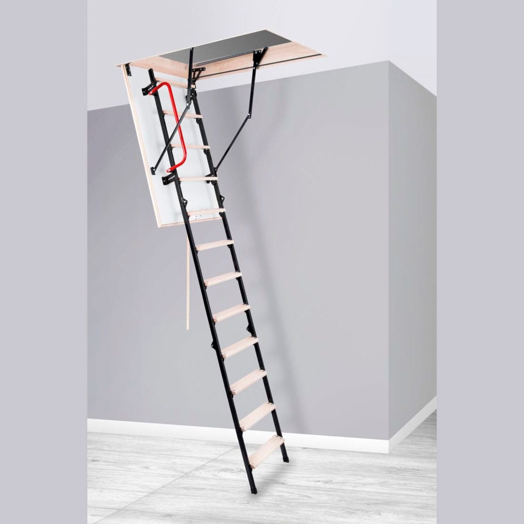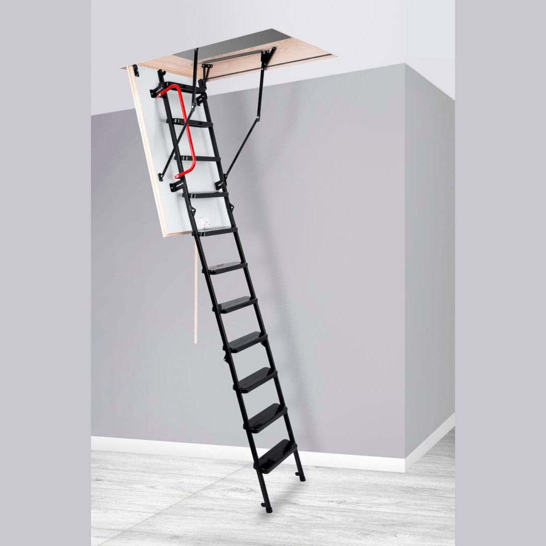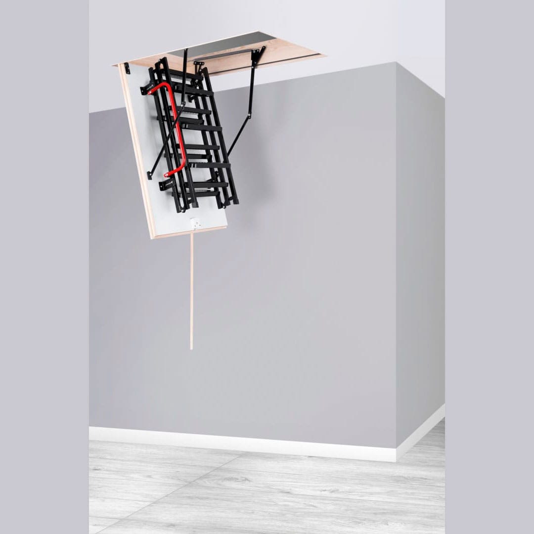 Модель FLEX, благодаря использованию цельнометаллической вытянутой «ножничной» лестницы, идеально подходит для установки в помещениях высотой до 290 см.