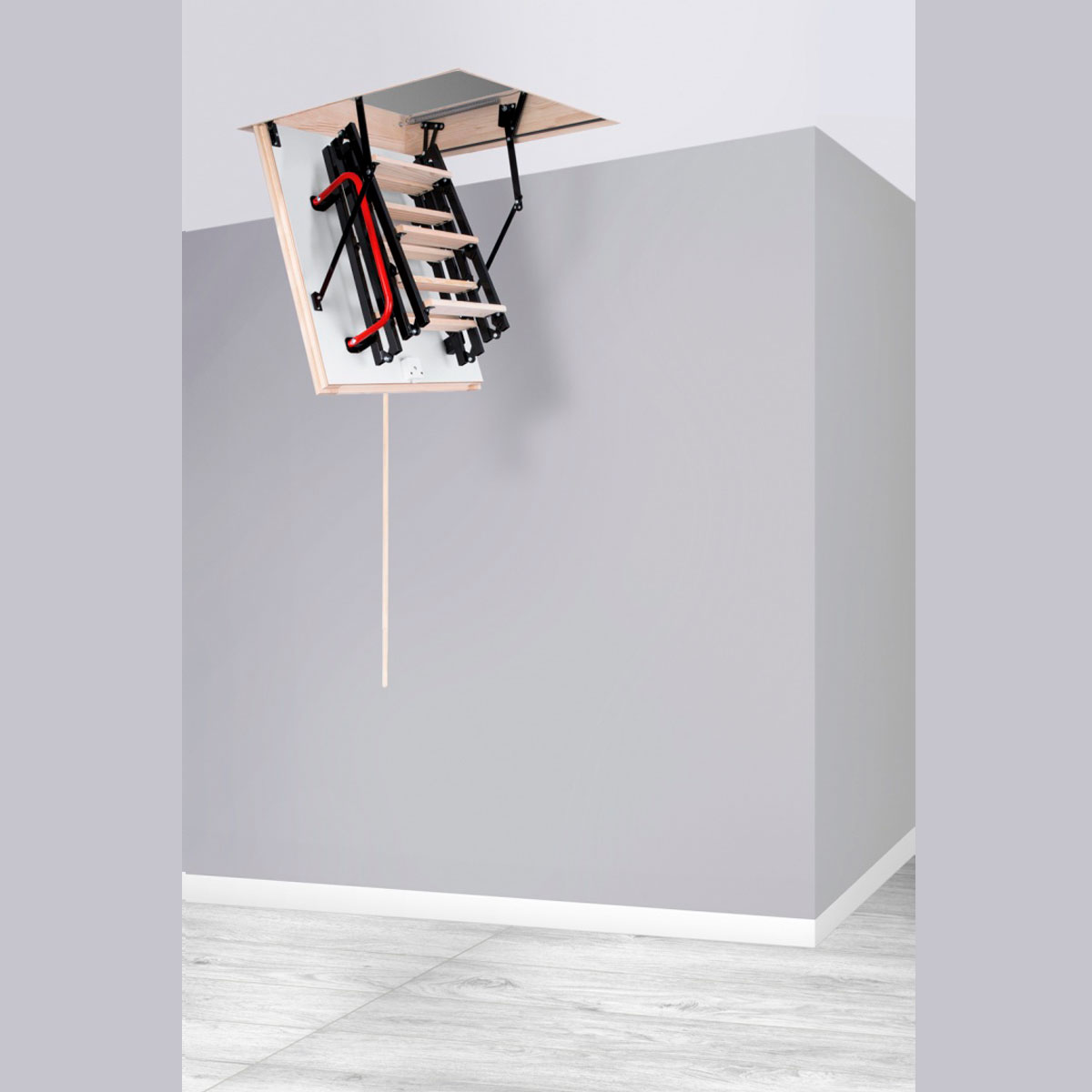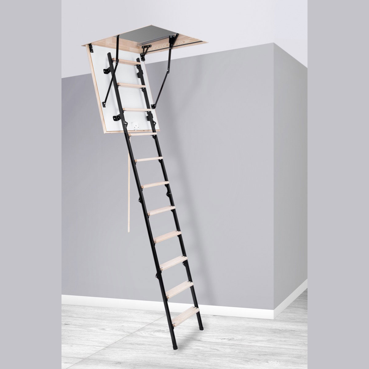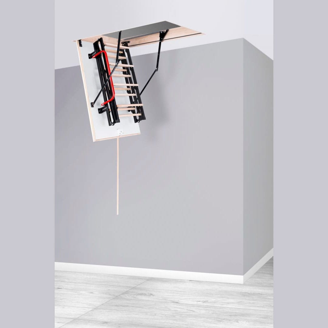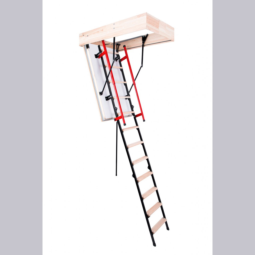 Модель FLEX, благодаря использованию цельнометаллической вытянутой «ножничной» лестницы, идеально подходит для установки в помещениях высотой до 290 см.