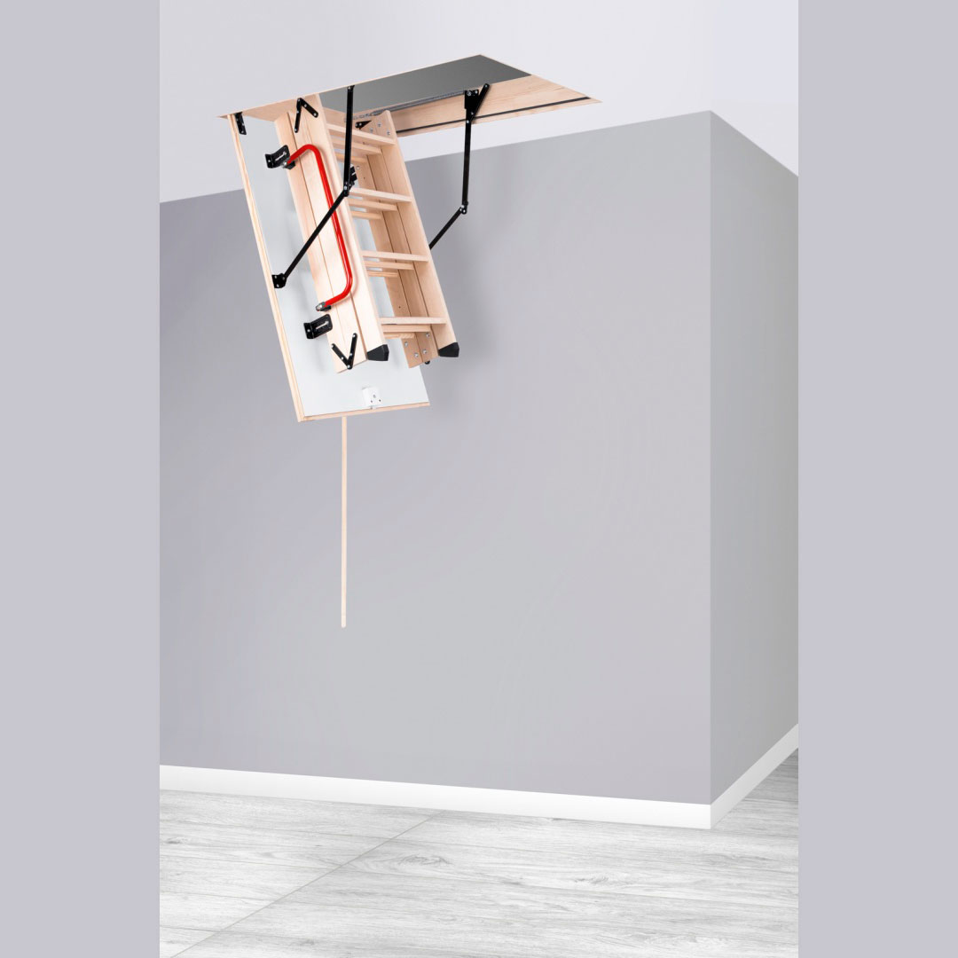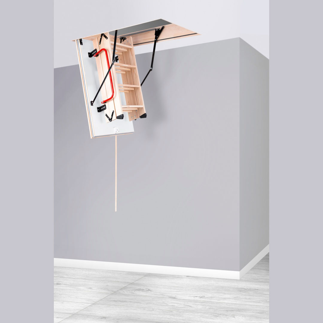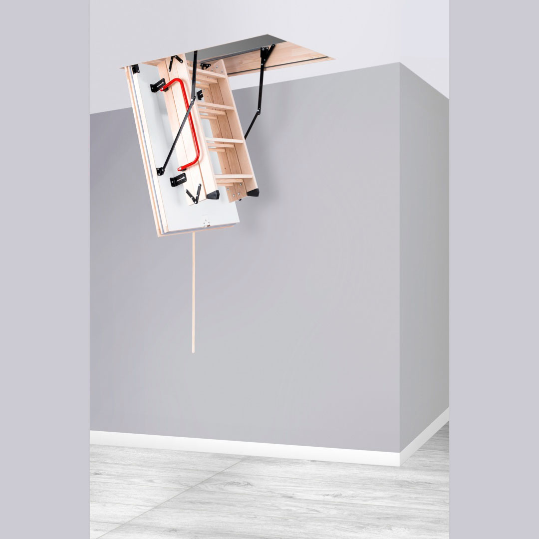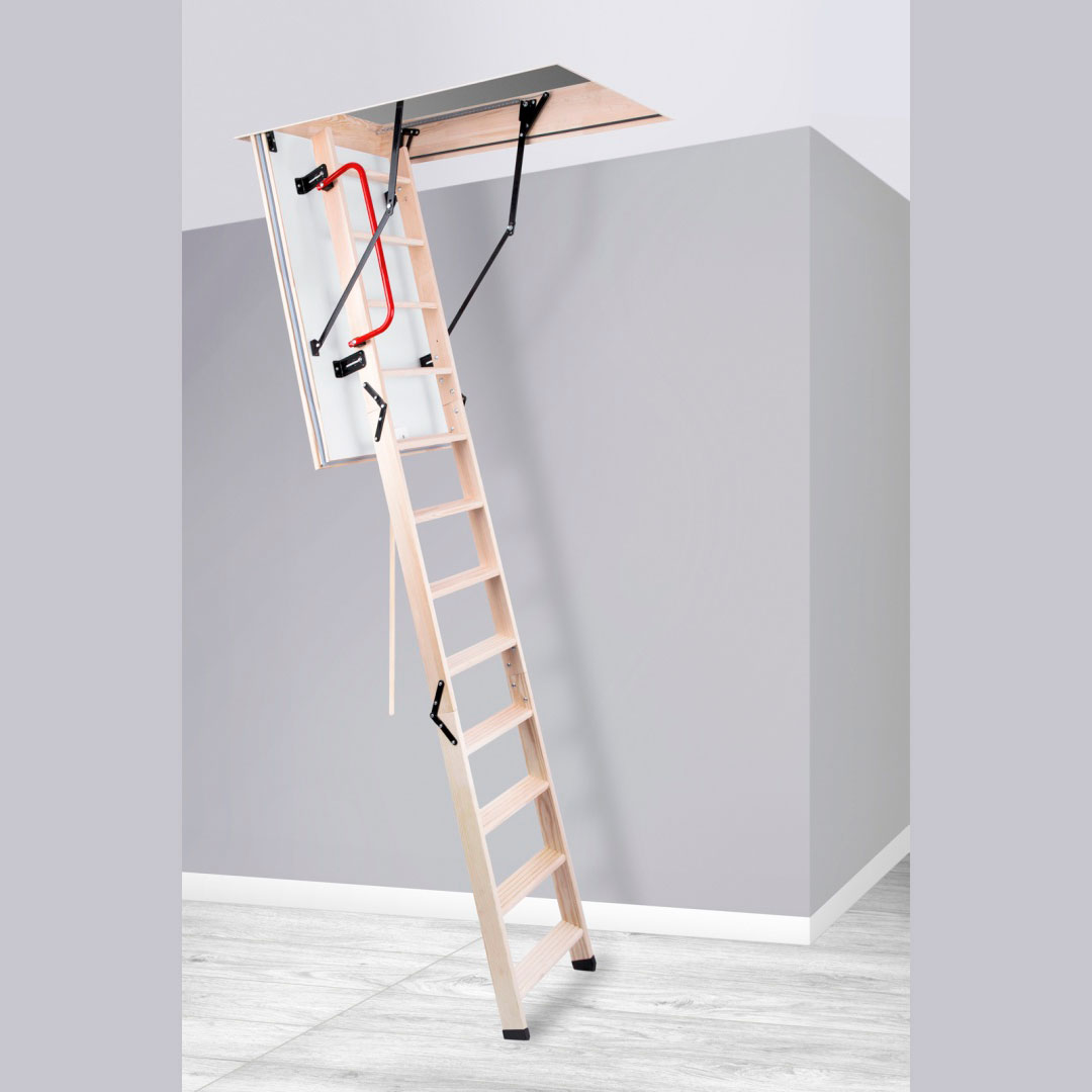 Модель FLEX, благодаря использованию цельнометаллической вытянутой «ножничной» лестницы, идеально подходит для установки в помещениях высотой до 290 см.