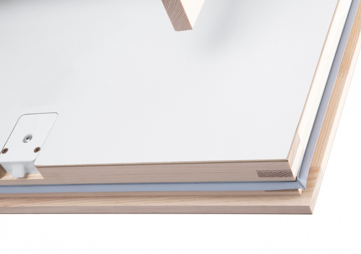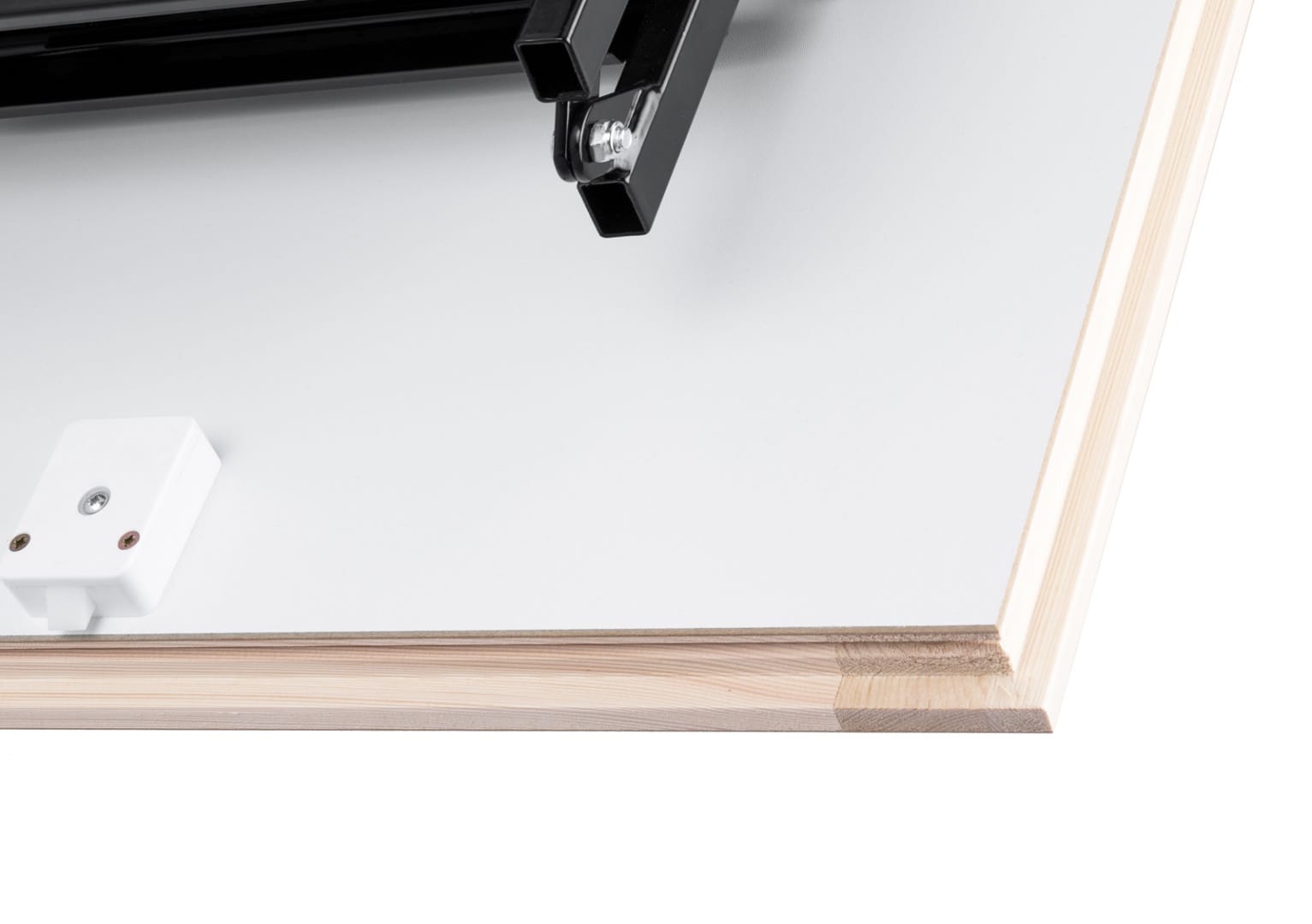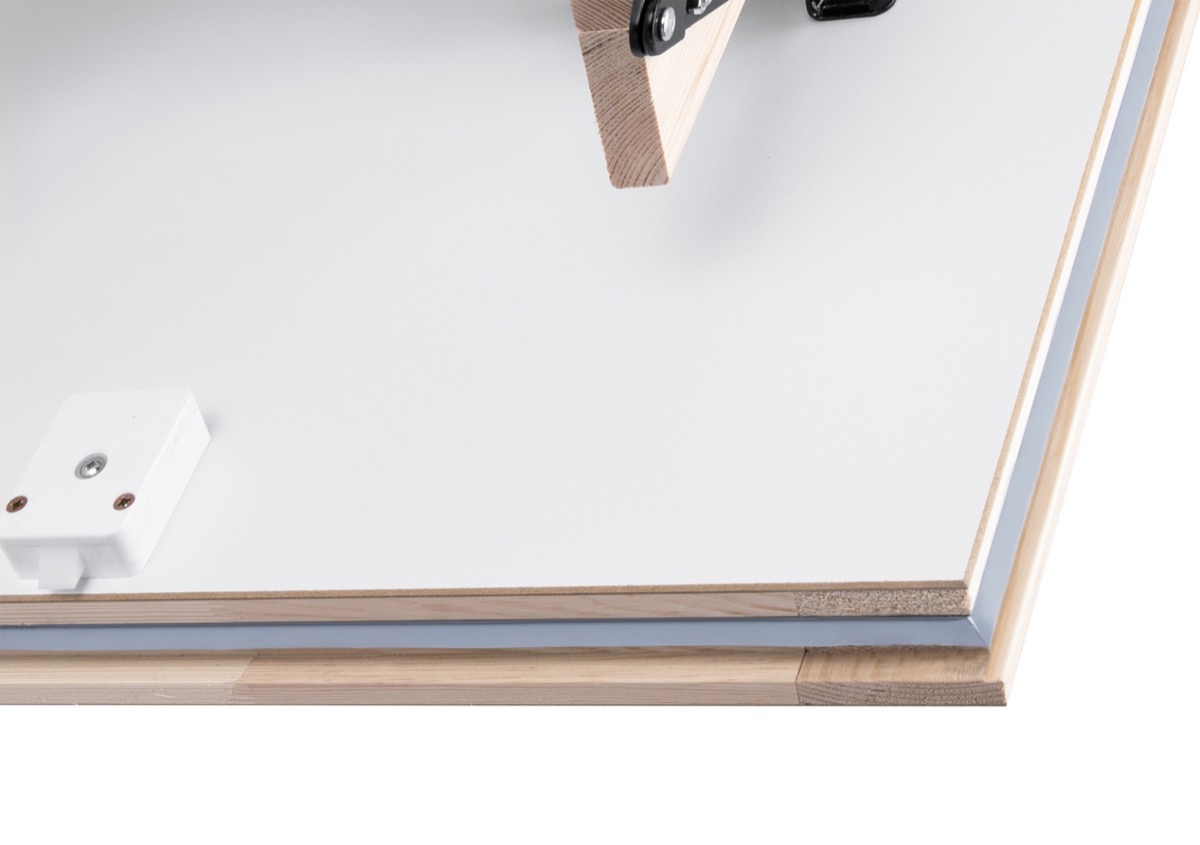 Входящий в комплект изделия люк толщиной 46 мм выполняет термоизоляционную функцию за счет внутренней изоляции из пенополистирола в сочетании с уплотнителями по всему периметру. С обеих сторон он облицован белым ДВП, поэтому хорошо сочетается с потолком светлого цвета.